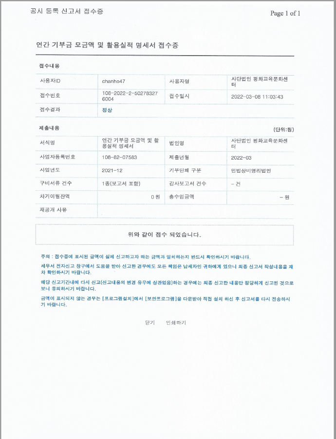 2021년연간기부금 활용실적 접수증