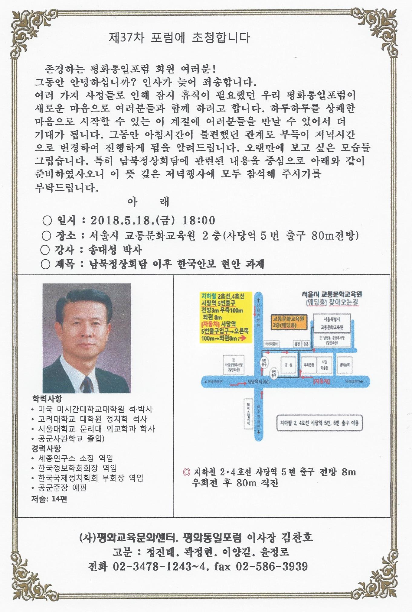제37차 포럼에 초청합니다