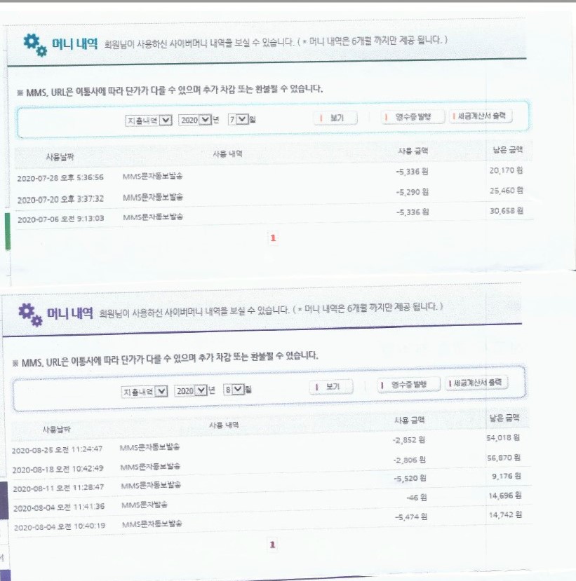 2020년9월30일까지 슈어엠 문자발송 지출건(파일1,캡처3)