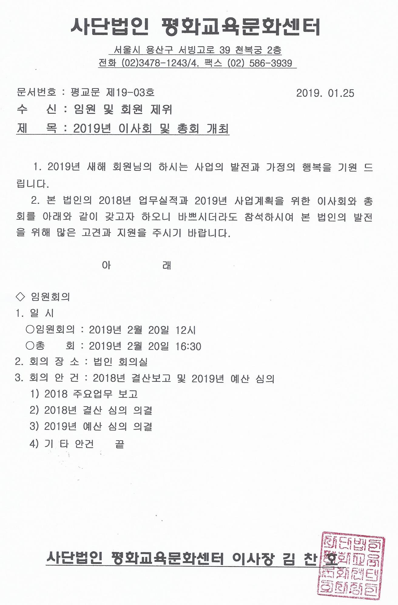 이사회. 총회 소집 통보