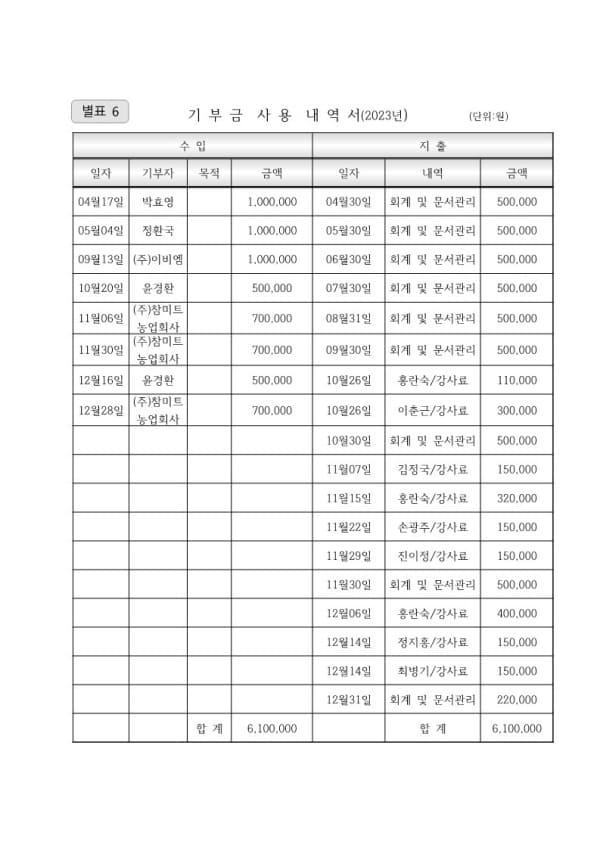2023년도 기부금 사용 내역서