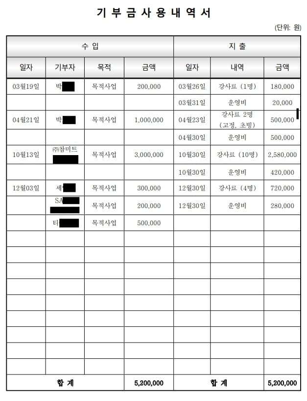 2025년 기부금 사용내역서