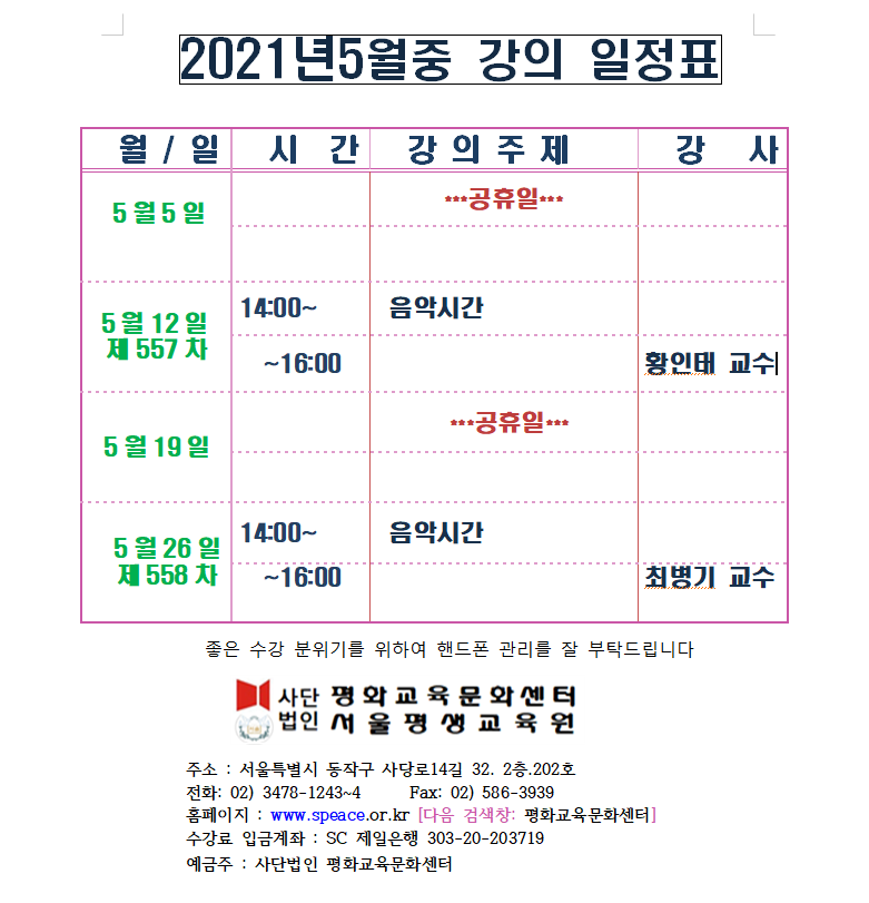 홈 > 서울평생교육원 >이달의강의 일정표