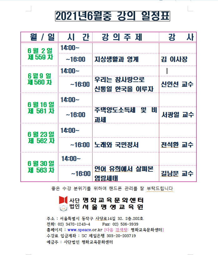 홈 > 서울평생교육원 >이달의강의 일정표