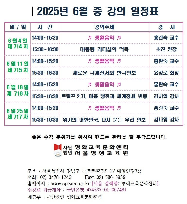 2025년 6월 중 강의일정표